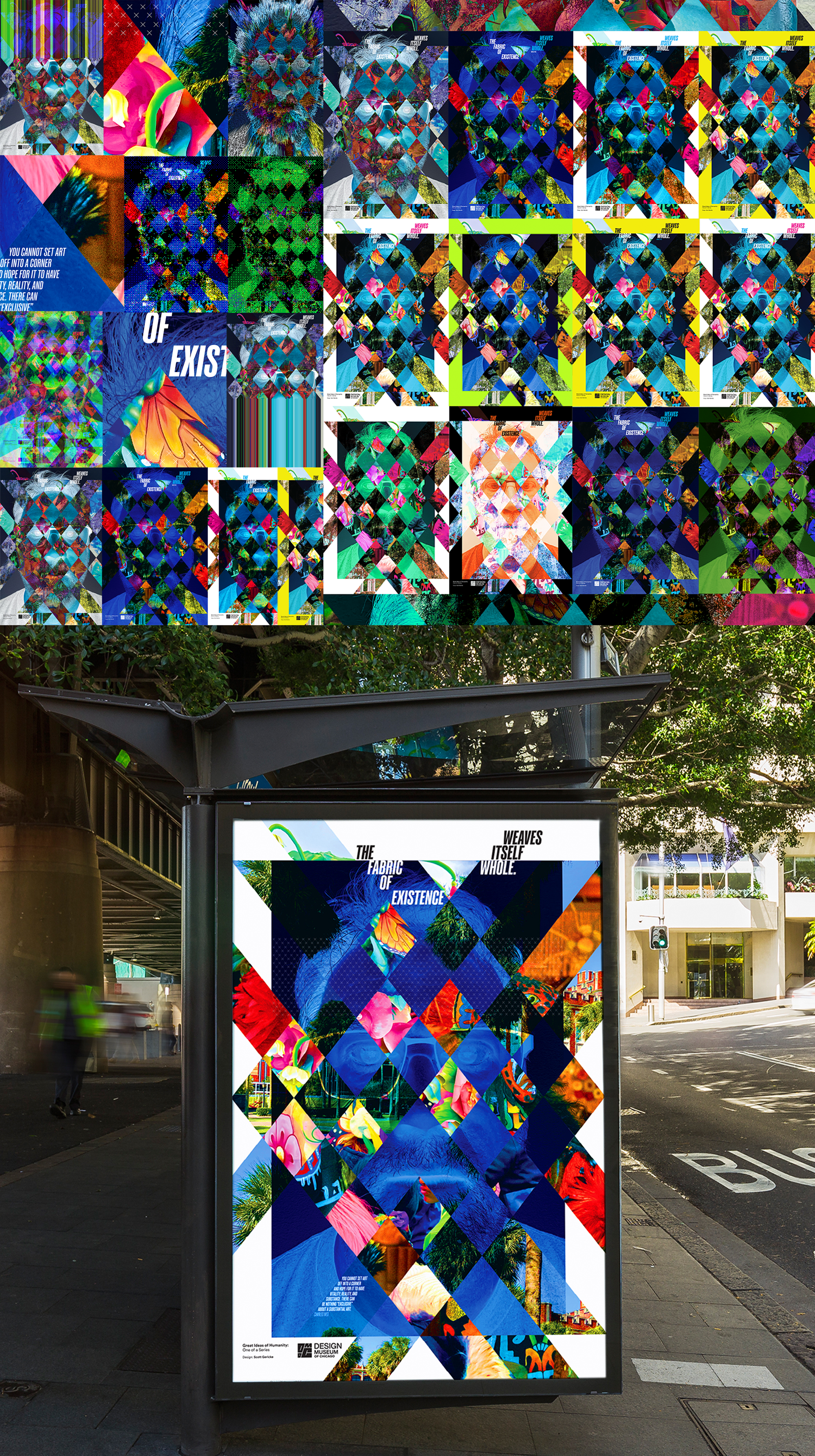I was fortunate enough, along with a few of my colleagues, to submit a poster to the Great Ideas of Humanity Poster Exhibition at the Chicago Museum of Design. My quote by Charles Ives: “The fabric of existence weaves itself whole. You cannot set art off into a corner and hope for it to have vitality, reality, and substance. There can be nothing “exclusive” about a substantial art.” I chose to associate myself with the city I call home, New Orleans—a place defined by its rich, vibrant celebration of life. It’s a deeply inclusive culture that thrives on connection and full-throttle human interaction. For me, it all weaves together into a living artistic tapestry of diverse and unique perspectives. I created several iterations and color studies to get the perfect mix of the collage technique I was going for. This all leads to the poster show at Loyola, which features over 50 posters, including mine.