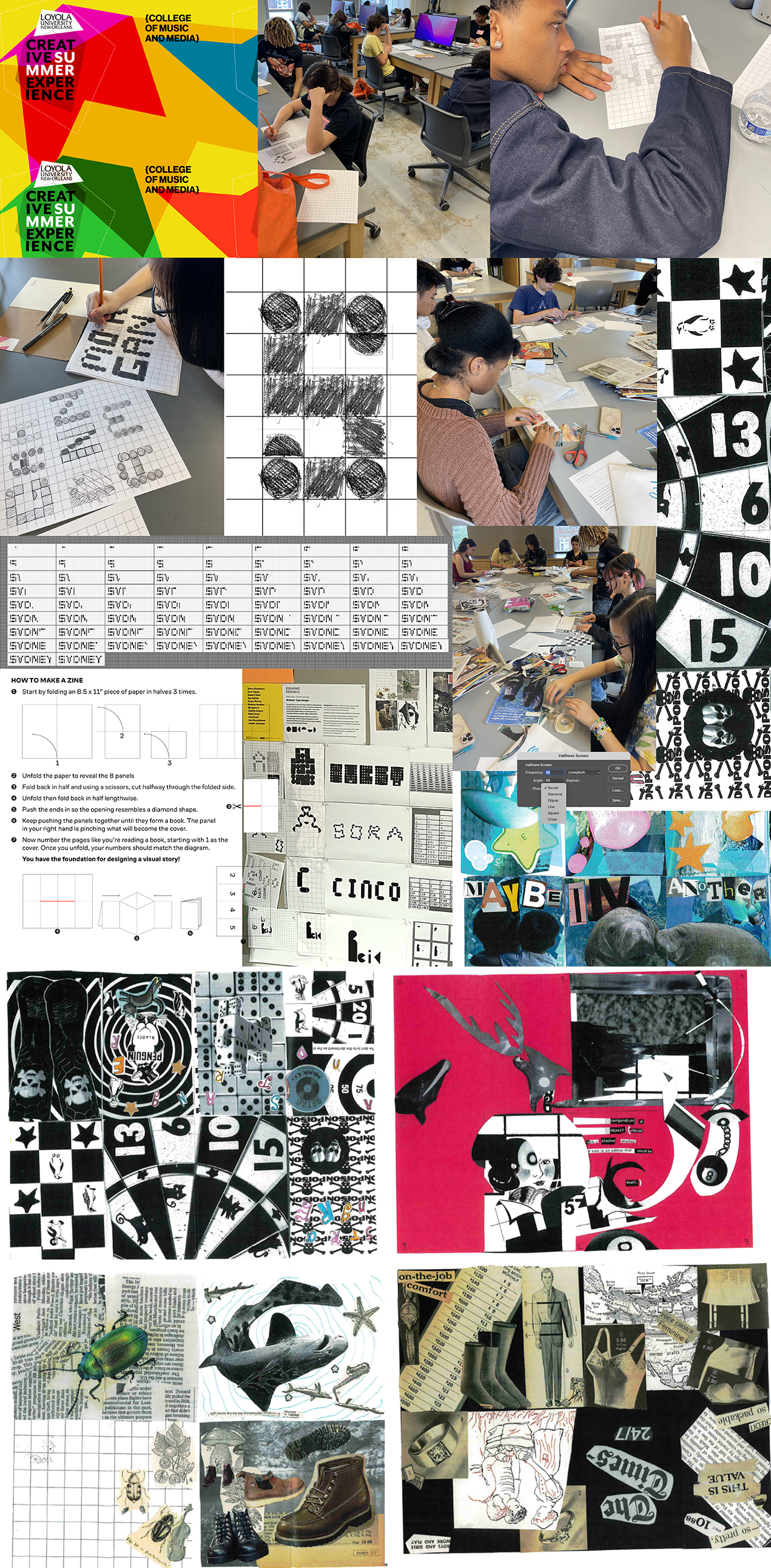 Loyola's College of Music and Media hosts the Creative Summer Experience, a comprehensive boot camp that exposes high school students to careers in motion design, graphic design, book arts, photography, game design, film, theater and music. High school students from across the region are invited to register and learn from top-notch educators and industry experts about the endless professional opportunities. It’s a hands-on workshop designed to challenge and inspire high school students to explore a variety of methods and media, while engaging in a process that is collaborative, thought-provoking, and imaginative. Students will take away resume-worthy experiences and projects for their portfolios. I stepped in to teach the design courses and challenged myself to build off the successes that were started, but also create something new.